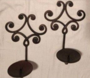 Set Of 2 Vintage Wall Mount Ornamental Iron Metal Pillar Candle Holder Sconces$25Lynwood, CA