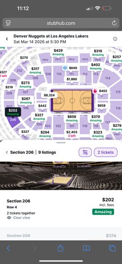 2 Tickets To Denver Vs Lakers Tonight March 14$380Inglewood, CA