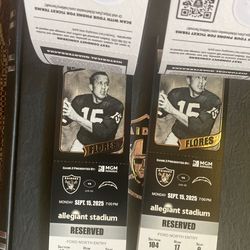 2 Tickets - Raiders vs Chargers 09/15/2025$550Las Vegas, NV
