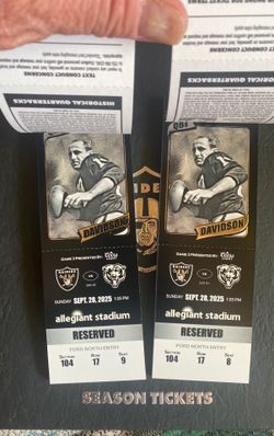 2 Tickets - Las Vegas Raiders vs Chicago Bears 09/28/2025$550Las Vegas, NV