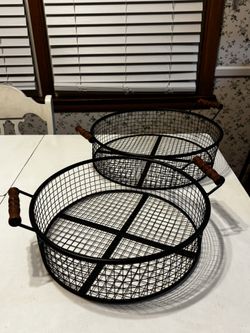 Set of 2 Round Wire Baskets with Wooden Handles$20Converse, SC