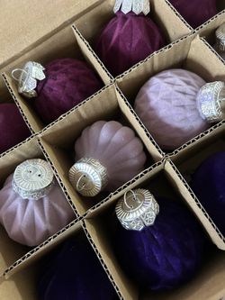 Box Of 24 Pcs velvet Christmas Ornaments: Purple, Pink, Light Purple $20Highland, CA