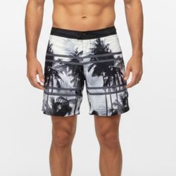 Cole Men's Black Grey Beach Scene Palm Trees Ocean Board Swim Shorts Trunks Sz L$25Las Vegas, NV