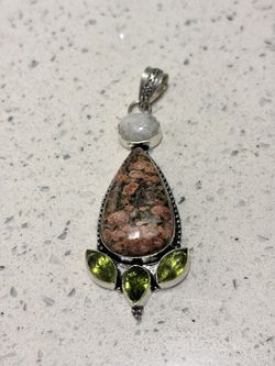 Sterling Silver Leopard Skin Jasper Pendant w/ Rainbow Moonstone + some Peridot$50Phillips Ranch, CA