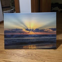 Beautiful Blue Sky Orange Sunset Beach Canvas Wall Art Print, Coastal Home Decor$25Round Lake Heights, IL