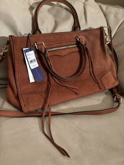 Rebecca Minkoff suede Regan brown almond leather purse bag satchel tote handbag new with tags$130Lynnwood, WA