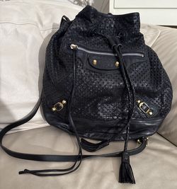 Balenciaga perforated leather bucket bag Black pampille pompon moto purse crossbody gold hardware$460Lynnwood, WA