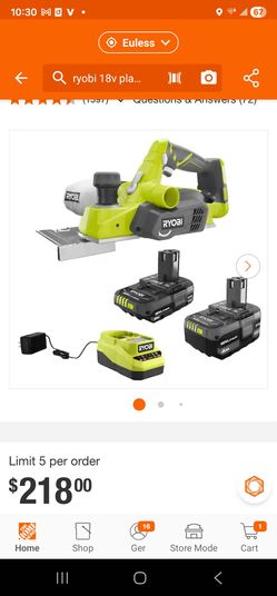 ONE+ 18V Lithium-Ion 4.0 Ah Battery, 2.0 Ah Battery, and Charger Kit with ONE+ Cordless 3-1/4 in. Planer$160Euless, TX