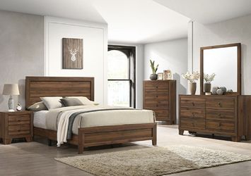 Queen Rustic Brown 4pc Bedroom Set Bed Dresser Mirror Nightstand $549Montclair, CA