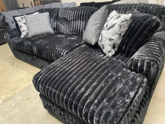Black Onyx Plush Corduroy 2pc Sectional with Chaise 120x65 includes six accent pillows $1,199Rialto, CA