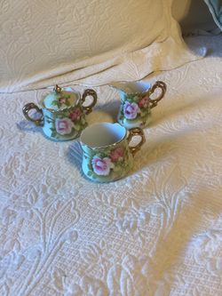 Vintage Lefton 3066 Green Heritage Rose Sugar And Creamer With Tea Cup$25Riverside County, CA