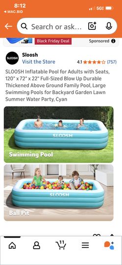 SLOOSH Inflatable Pool for Adults with Seats, 120" x 72" x 22" Full-Sized Blow Up Durable Thickened Above Ground Family Pool, Large Swimming Pools for$20Goodyear, AZ