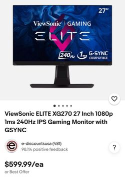 View Sonic Elite 270xg Gaming Monitor With Webcam$135Berenda, CA