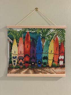 Finished Framed Diamond Art Painting Rainbow Surf Board Hawaii Tropical Wall Dec$20Worth, IL