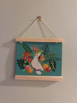 Diamond Art Completed Wall Hanging White Cockatoo Bird Tropical Flowers Framed$12Worth, IL