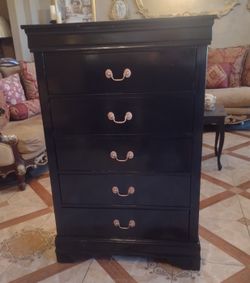 SoldUSED FURNITURE Painted Black Wooden Five Drawer Dresser $30Houston, TX