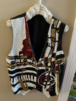 1990’s “FASHION FANTASY” Jazzfest WOMEN’S VEST with Sequined Musical Instruments, Excellent Condition $38Artesia, CA