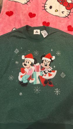 NEW ‼️ XL. 2023 Disney Parks Santa Mickey & Minnie Green Holiday Pullover Sweatshirt$50Lawndale, CA