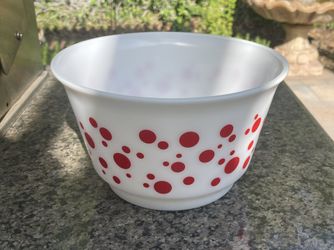 LARGE VINTAGE MILK GLASS RED DOT BOWL$45Yorba Linda, CA