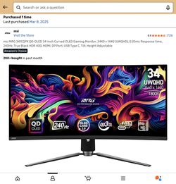 MSI MPG 341CQPX QD-OLED 34-inch Curved OLED Gaming Monitor, 3440 x 1440 (UWQHD)$680San Diego, CA