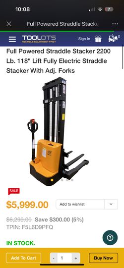 Full Powered Straddle Stacker 2200 Lb. 118" Lift Electric Straddle Stacker Folk Lift With Adj. Forks$3,999Irvine, CA
