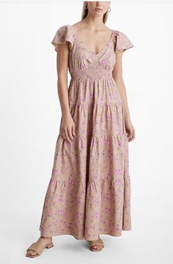 Floral V-Neck Flutter Sleeve Tiered Poplin Maxi Dress Festival Garden Dress$30Whittier, CA