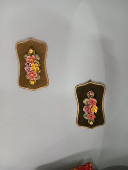 Lot of 2 SALVAGED Wall Decor,Made In Italy, Porcelain Flowers, 13" × 8" × 2-1/2".