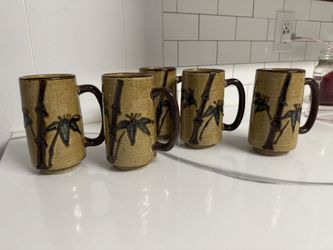 Vintage Japanese stoneware bamboo leaf coffee/tea mugs, set of six, modern rustic, coffee shop mugs$40Lacey, WA