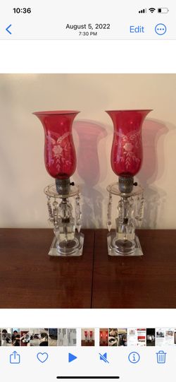 Pair Of Vintage Cranberry Mantle Luster Lamps$250Elsmere, DE