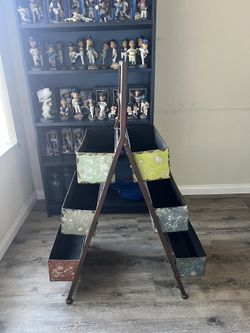 three-tiered A-frame metal stand with a rustic finish. $15Lakewood, CA