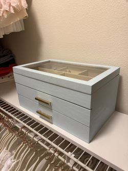 Glass Top Jewelry Box Organizer Blue w Gold Hardware 2 Drawer Storage Gorgeous Jewelry Organizer Tiffanys Blue Glam $65Newport Beach, CA