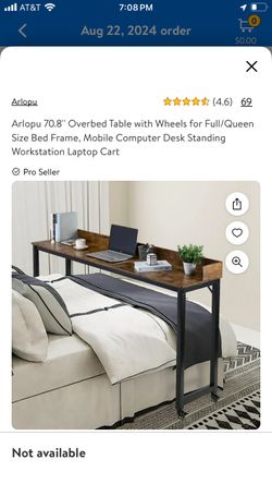 Arlopu 70.8'' Overbed Table with Wheels for Full/Queen Size Bed Frame, Mobile Computer Desk Standing Workstation Laptop Cart$95Lexington, NC