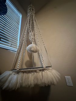 Boho Macrame 7ft Ceiling Hang With Circular Glass Shelf And Macrame Sling Wedding Decor Or Home Decor $60Phoenix, AZ