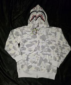 Bape Shark Full Zip-Up Hoodie, White & Gray Glow In The Dark Camo, Size M$0Fontana, CA