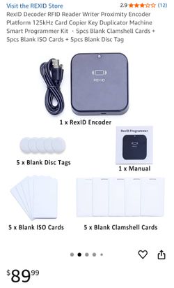 Brand New in Box RexID Decoder RFID Reader Writer Proximity Encoder Platform 125kHz Card Copier W/5pcs Blank Clamshell Cards/5pcs Blank ISO Cards/5pc$40Irvine, CA