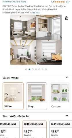 Brand New in Box KALYSIE H64'xW40' Zebra Roller Window Blinds Dual Layer Shade White Staging Decor$10Irvine, CA