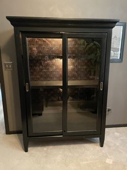 Cabinet with adjustable shelves glass doors wood with black Art Deco OBO $150Poplar Grove, IL