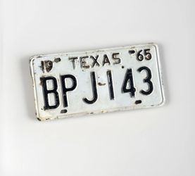 “1965 Texas License Plate BP J143 – Original Vintage TX Tag – White/Black – Man Cave Decor”$30Canyon, TX