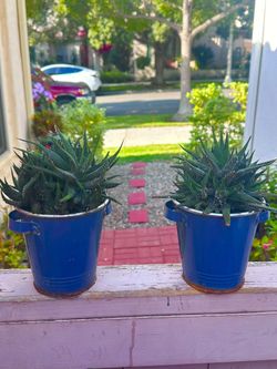 2 Blue Metal Pots With Zebra Succulents Included $10Camarillo, CA