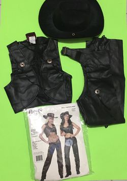 Halloween Western Adult Costume size Small-Black Vest Chaps And Hat$20Houston, TX
