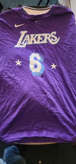 Men's Nike City Edition Alphabet Numeric Casual Short Sleeve Lakers Lebron James No. 6 Court Purple T-Shirt $20Wilmington, CA