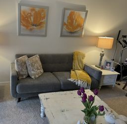 Living Space Dark Gray 80” Sofa/track Arms, Tufted $250Newport Beach, CA