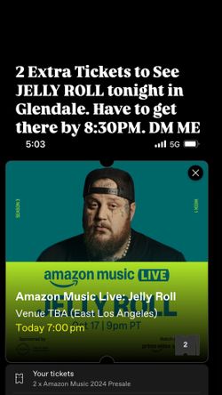 Jelly Roll - Amazon Music Concert Tonight$15Los Angeles, CA
