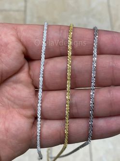925 Sterling Silver Sparkle Glitter Margarita Twisted Rock Chain 1.8mm Necklace, Gold, Silver$25Austin, TX