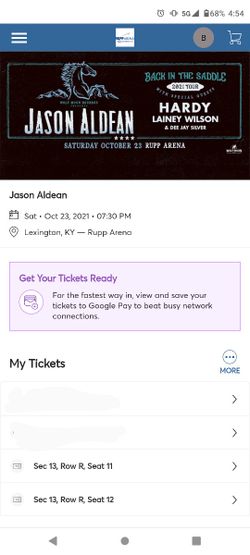I have two Jason Aldean tickets for sale cheap for tomorrow night at 7pm at rupp in Lexington. $100Cincinnati, OH