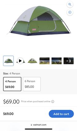 Coleman Sundome 4-Person Dome Camping Tent, 1 Room, Green$40Edgewood, WA