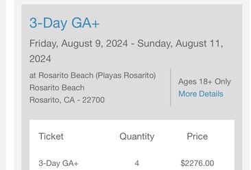 Baja Beach Fest 3 Day GA+ (1Ticket) $400 OBO$400Lynwood, CA