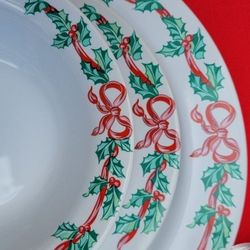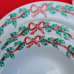 Christmas Ribbons Stoneware New 5 Pieces each 4 Place Settings$25Puyallup, WA
