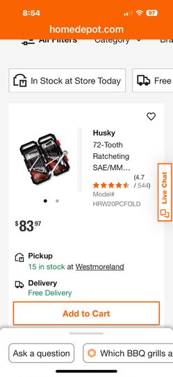 Husky 72-Tooth Ratcheting SAE/MM Combination Wrench Set (20-Piece)$40Dallas, TX