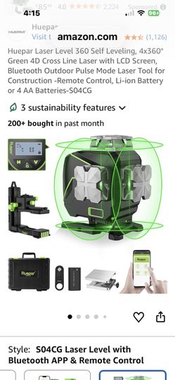 Huepar Laser Level 360 Self Leveling, 4x360° Green 4D Cross Line Laser with LCD Screen, Bluetooth Outdoor Pulse Mode Laser Tool for Construction$100Dallas, TX
